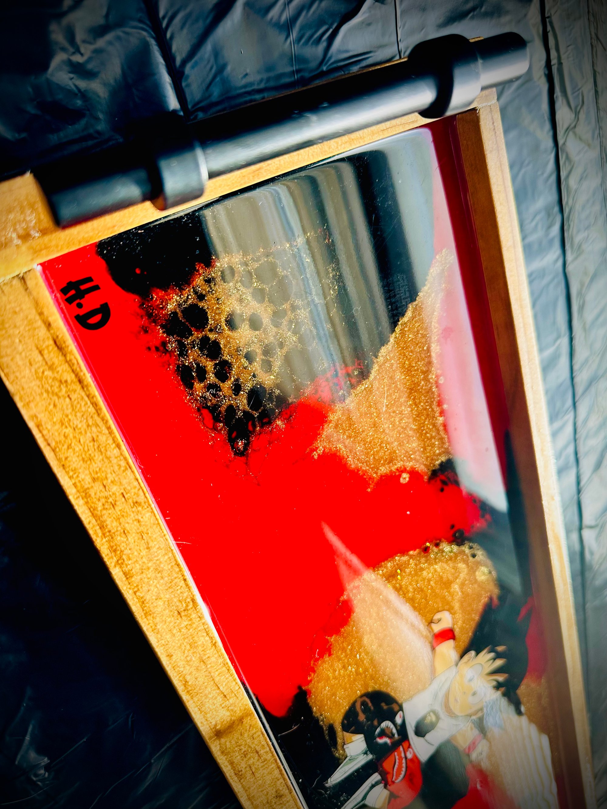 "Perfect for anime enthusiasts, this rectangular wooden tray features a vibrant design of Baby Goku from Dragon Ball, set against a backdrop of red, black, and gold patterns. The design includes a central image of Baby Goku with an orange and white outfit, with 'BABY GOKU' text in the lower right corner. Ideal for serving snacks, organizing items, or displaying your favorite collectibles, this tray is a versatile and eye-catching addition to any room. Whether you're hosting an anime-themed party or simply want to showcase your love for Dragon Ball, this multipurpose tray is a must-have for any fan!"
